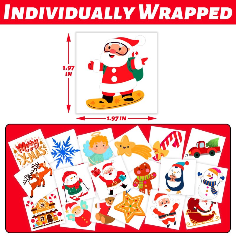 - Great Value Pack: You will get 240 Pcs Christmas temporary tattoos is individually wrapped, 60 pattern in one pack for all your needs. Bulk Christmas gifts for kids stocking stuffers.