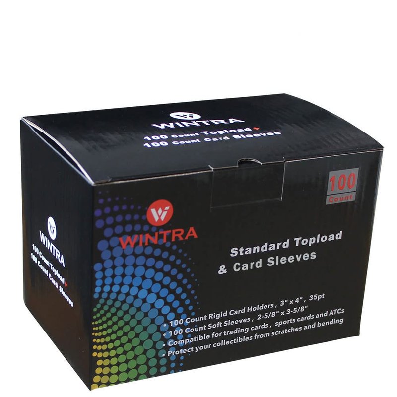 WINTRA 50-Count Regular Topload Hard Card Holder + 100 Soft Sleeves for Collectible Trading Cards and Sports Cards
