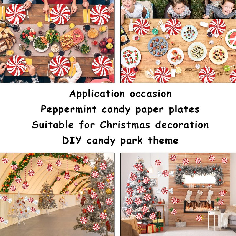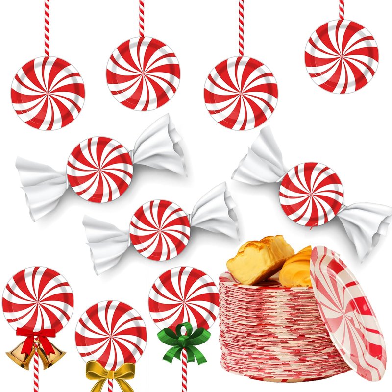 - 【Peppermint dessert paper Plates】Our Christmas plates and napkins are designed Red and white Peppermint patterns that add a holiday touch to your Christmas party. Whether you're serving up a delicious feast or snacks, our Christmas tableware will bring your Christmas celebration to life. Get ready to celebration Christmas experience with our Peppermint tableware! You can make handmade fake Lollipops with sticks. Or you can directly stick them on the wall as Christmas decorations.
