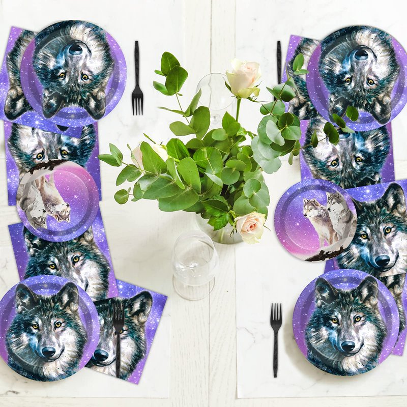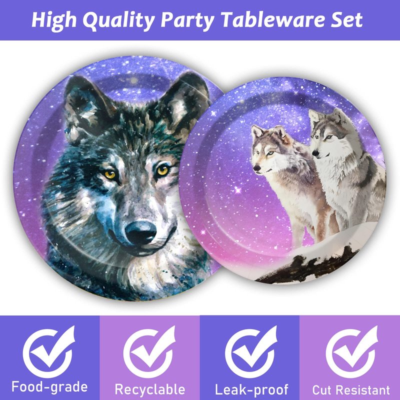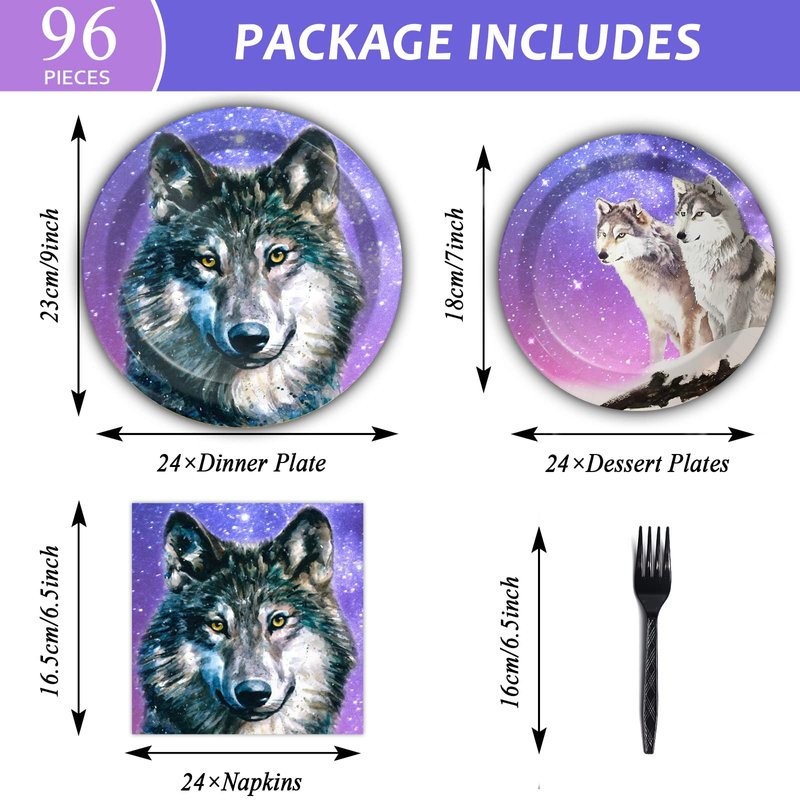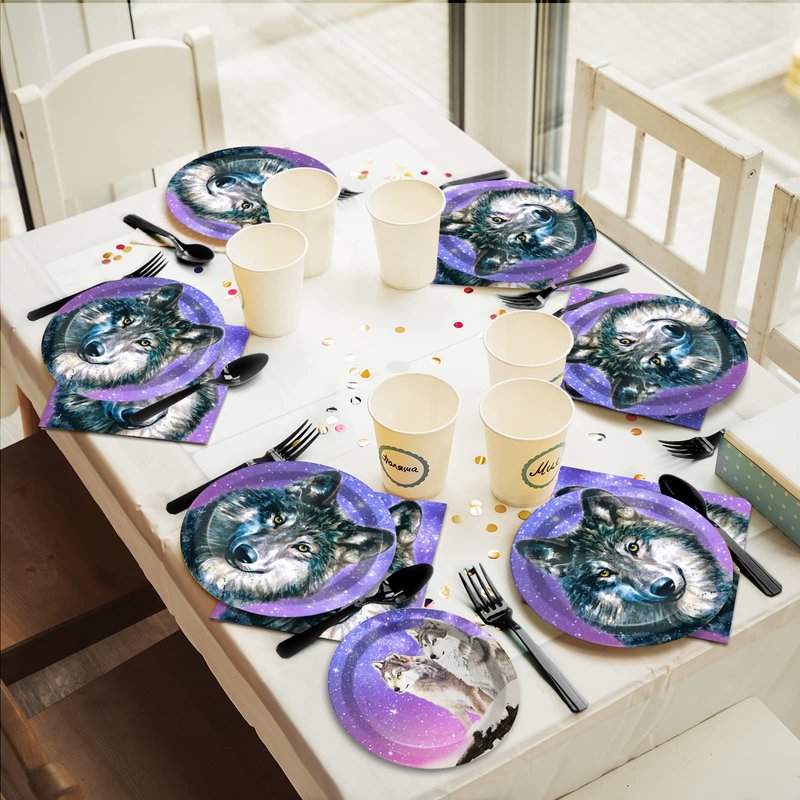 - 【Wolf Party Table Settings】These wolf party tableware kit can serve 24 guests, an enough quantity for a normal wolf theme big day. These wolf party decoration kit will make your table settings look fantastic and all your guests will be happy.