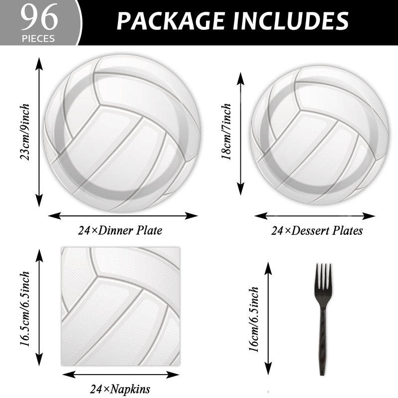 - 【Serves 24 Guests】Volleyball birthday party supplies Included: 24pcs 9" Dinner plates, 24pcs 7" Dessert Plates, 24pcs paper Napkins, 24pcs forks that can serve 24 guests, enough quantity for a different and unique party!