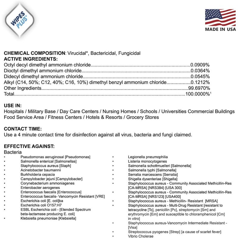 WipesPlus Disinfecting Wipes - Industrial Strength Sanitizing Wipes - Pack of 80 Disinfectant Wipes - Made in the USA