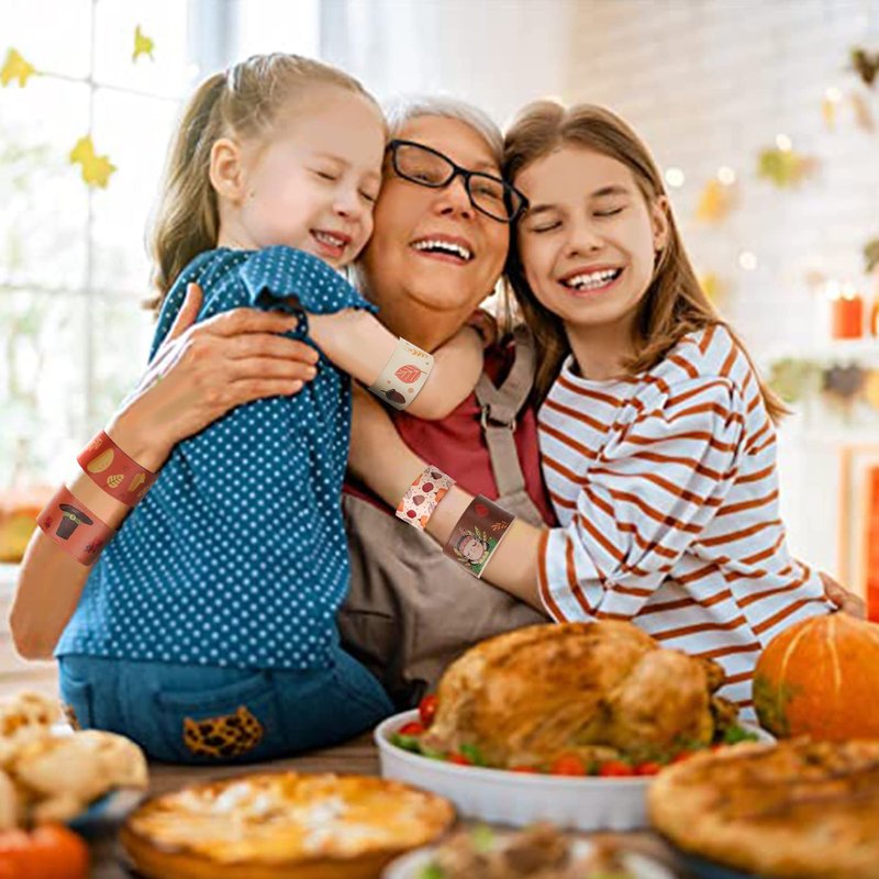 - 【Thanksgiving design】: The Slap bracelets are designed with Thanksgiving styles, including maple leaves, pumpkins, hazelnuts, turkeys, corn, etc., which are printed clearly, colorful and it’s funny to wear on hands, that would bring you with your families and friends funny Happy Thanksgiving and Harvest atmosphere.