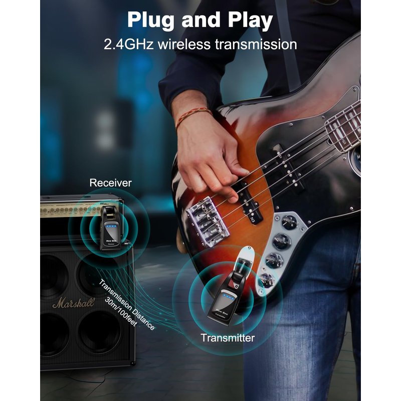 - 🎸 High-Grade Wireless System——Clear Quality Signal Transmission.Our guitar wireless system is optimal for more stable and high-quality audio transmission. Low noise, low latency, no interference, over 20 meters transmission distance.