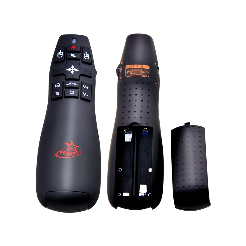 - As well as the "air mouse" the remote INCLUDES Volume Control, Red Laser Pointer, Hyperlink Ability, Stop & Start of Audio & Video within presentations, Page Up, Page Down,Mouse lock, Left & Right mouse click making the PR-820 a More Powerful & Feature Rich than the Red Star Tec PR-819 or similar equivalents
