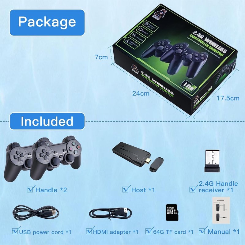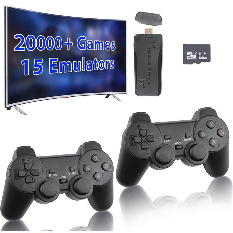 • 🎮【Built-in 20000+ Classic Games】This wireless TV game console built in 20000+ rich games, is pre-install 9 emulators, and pack with 64GB TF card. No need to download and install by yourself, no internet required