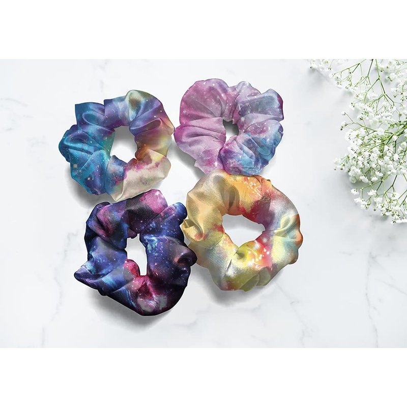 WIRESTER 4 Pcs Satin Hair Scrunchies, Silk Hair Ties, Soft Elastic Hair Bands Ponytail Holder, Silky Curly Hair Accessories for Women Girls - Space Galaxy Stars