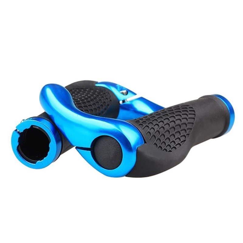 WIROJ BlueSunshine The Comfiest Ergonomic Bicycle Handlebar Rubber Grips with Anti-Slip Contoured Design and Aluminum Alloy Inner Ring Clamps (Blue)
