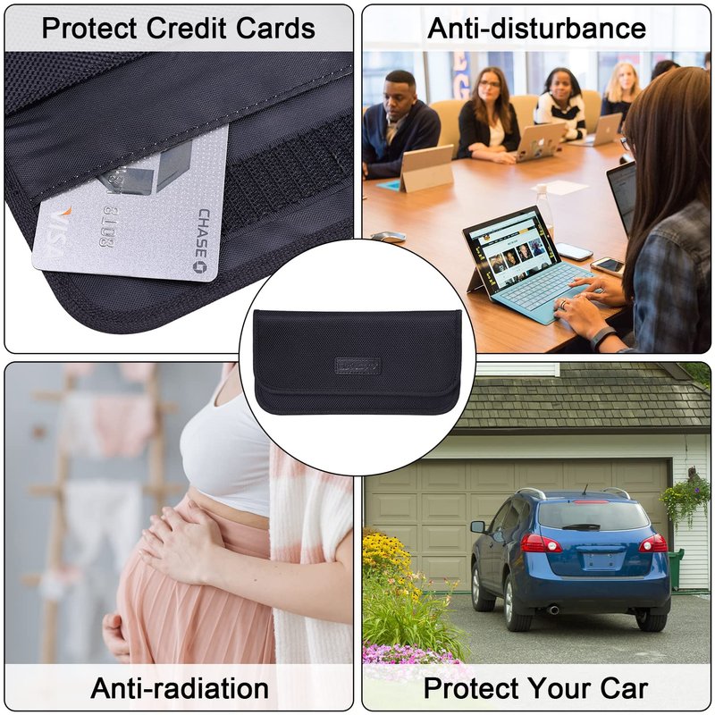 Wisdompro Faraday Bag, RFID Signal Blocking Bag Shielding Cage Pouch Wallet Case for Cell Phone Privacy Protection and Car Key FOB, Anti-Tracking, Anti-Spying Case Blocker - Black