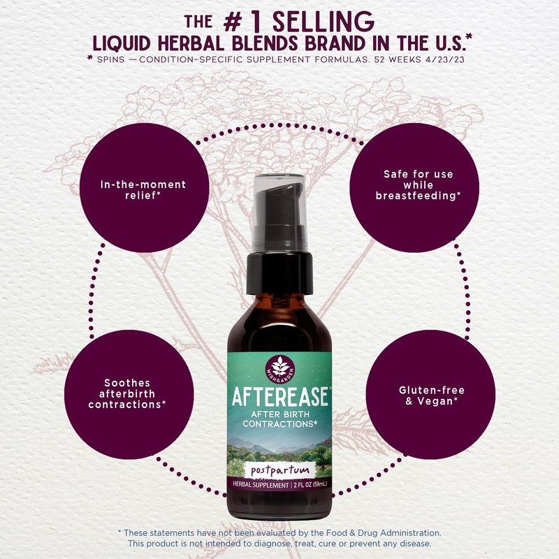 - Color: Wishgarden Herbs Afterease for After Birth Contractions - All-natural Herbal Supplement With Cramp Bark & Black Haw Bark Soothes Afterbirth Contractions & Uterine Cramping, Postpartum Essentials, 4oz