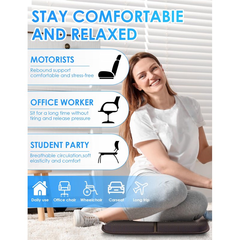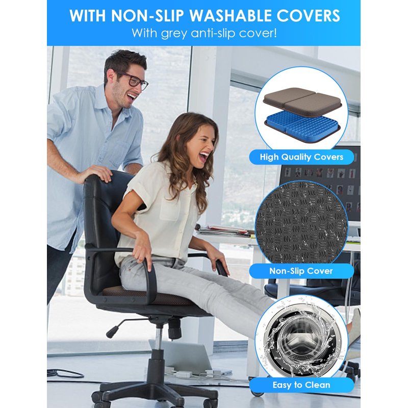 - 🍃[Comfortable and Relaxing]: This gel seat cushion made with gel, soft and durable, our pressure relief seat cushion disperse hip pressure, keep the hip curve. Relieve the pressure pain of the tailbone, provides additional comfort for any chair, seat, bench or stadium seat. Sitting for a long time will not feel stuffy, very breathable, high resilience, comfortable, and not tired!