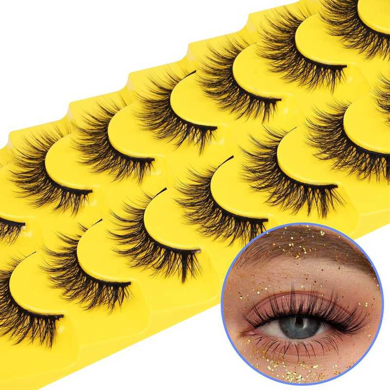 Wispy False Eyelashes Natural Mink Lashes Lightweight Manga Lashes Pack 3d Volume Eye Lashes Natural Look 8 Pairs Short Anime Fake Eyelashes by TNFVLONEINS