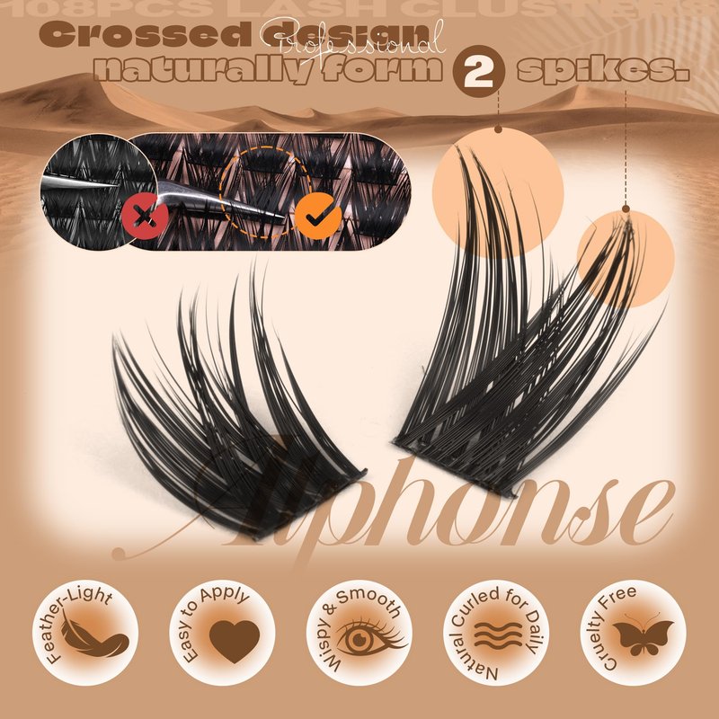 - Double-Spike Design: The crossed design of lash cluster naturally forms two spikes, creating wispy lash clusters and seamless blend with your existing lashes. Suitable for daily and special moment.