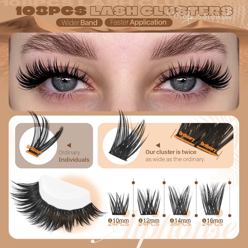 ALPHONSE 3D Eyelash Extension Pack: With 108 false lash clusters, achieve a full and wispy lash look effortlessly.