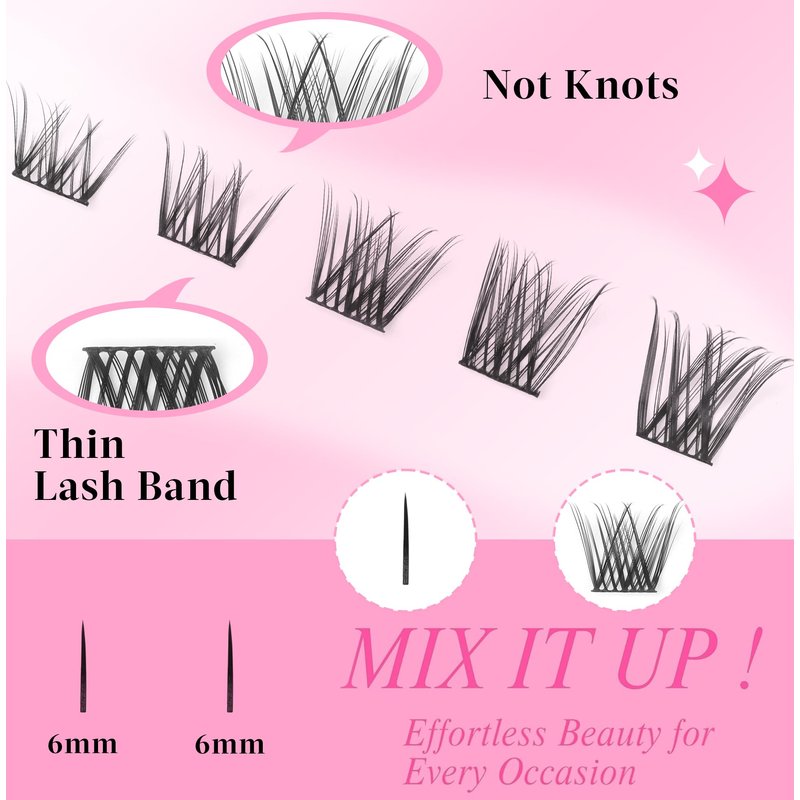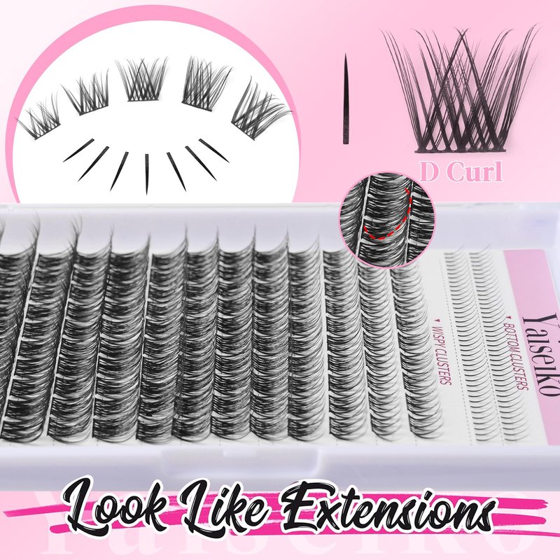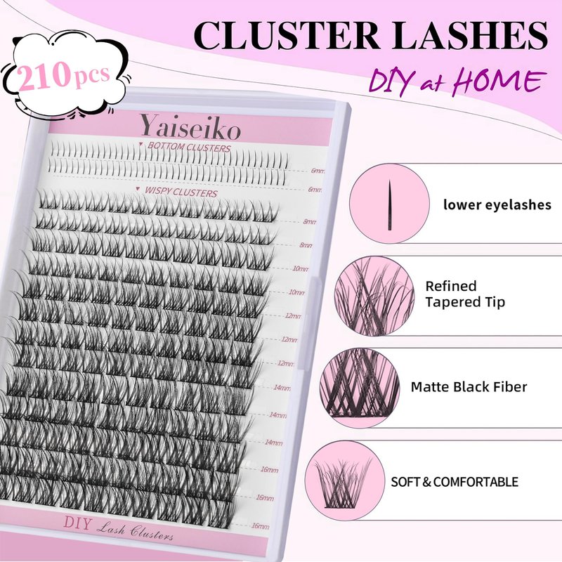 - ♥【Wispy Lash Cluster with Bottom Lashes】Yaiseiko cluster lashes contains 130Pcs 8-16mm wispy cluster eyelashes and 80Pcs 6mm bottom lash clusters. This combination helps create a more balanced and eye-catching appearance, contributing to a more expressive and charming eye makeup look.