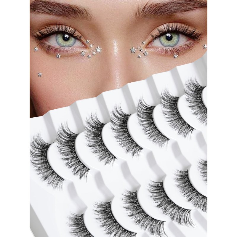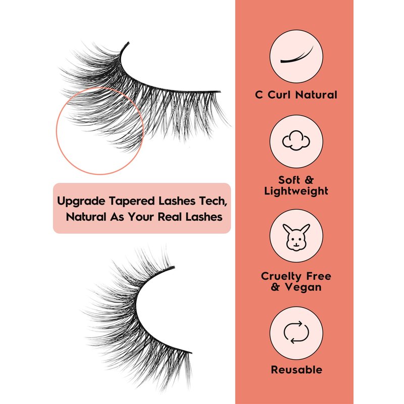 - VEGAN & REUSABLE: 7 pairs lash pack. The fake eyelashes use ultra-light faux mink fibers, cruelty-free, skin friendly. Bring pretty lashes extension look without damaging your own lashes. The fake lashes can be reusable for about 15 times if the eyelashes are used correctly