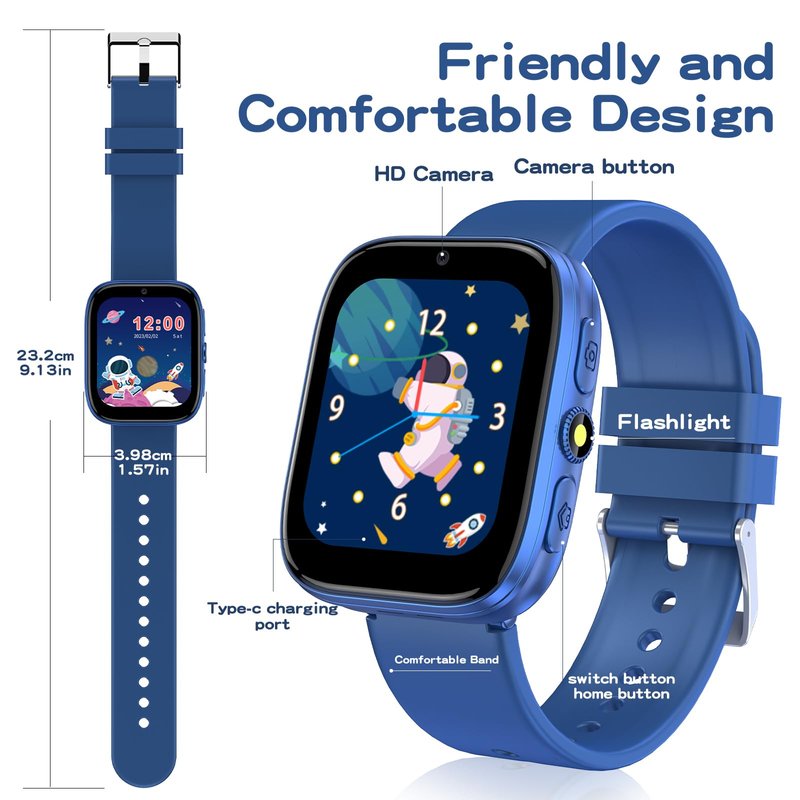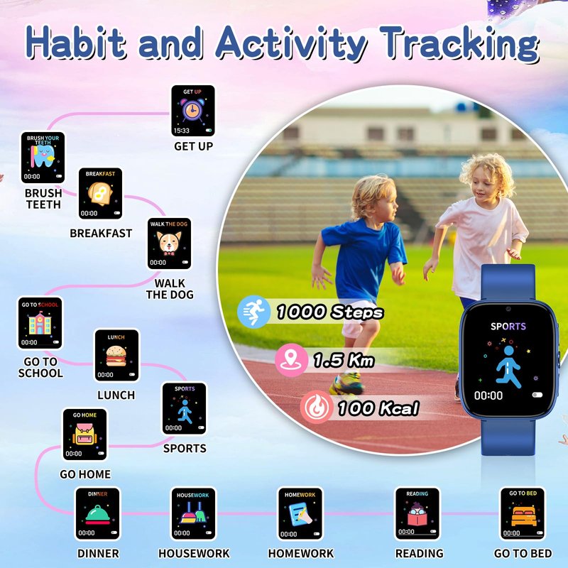 - 🎉🕰️【Multi-Functional Kids Smartwatch】This touchscreen watch is packed with features: games, habit trackers, audiobooks, learning cards, camera, video, MP3, recorder, stopwatch, calculator, themes, screen protector, & parent control. An exciting new experience for kids 8-10!