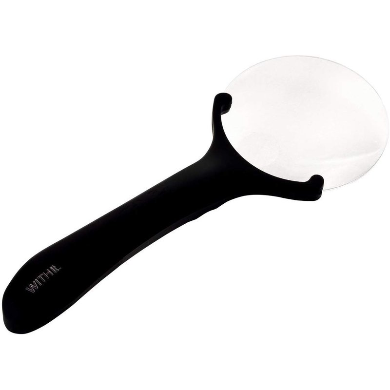 - LED MAGNIFIER FOR READING: The WITHit Task Rimless Lighted Magnifier is just what your desk needs. It has a 3.5” optical-grade acrylic lens, a rimless design, and 2 bright LEDs that illuminate the viewing area.