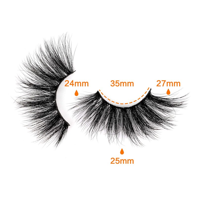 - Premium super length 25mm faux mink lashes with wispy hairs and fluffy curls