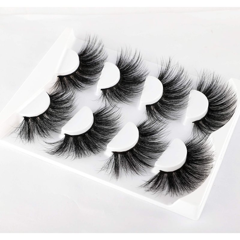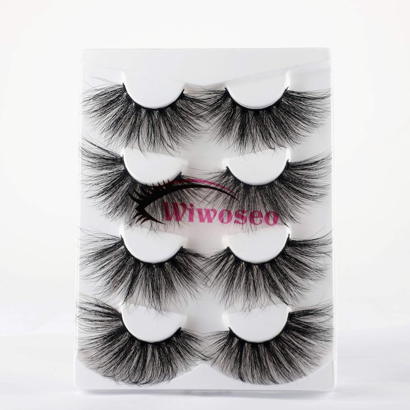 wiwoseo 25MM Lashes False Eyelashes Long Dramatic Faux Mink Fake Eye Lashes Thick Cross Fluffy Volume 4 Pairs Pack