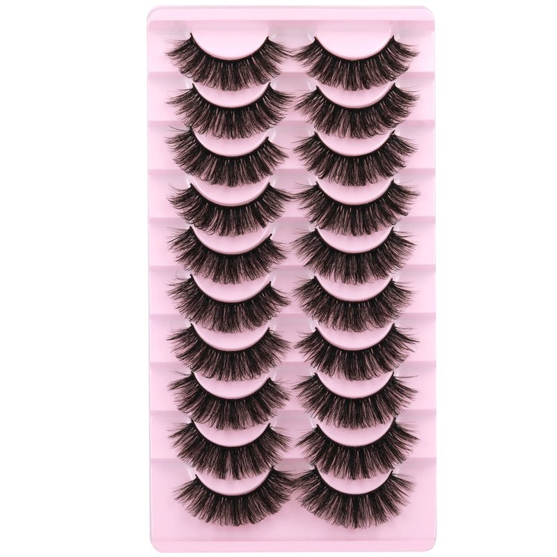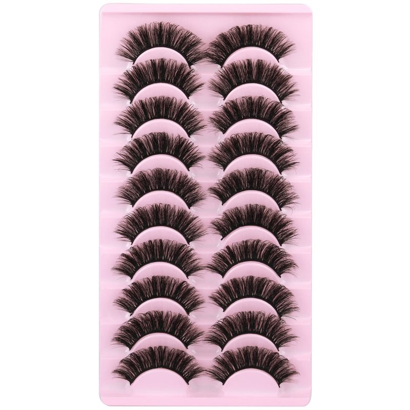 wiwoseo Eyelashes Natural Volumn Faux Mink Lashes Natural Wispy Fluffy Curly Lashes 17MM 3D Effect Fake Eyelashes Little Dramatic 10 Pairs Pack