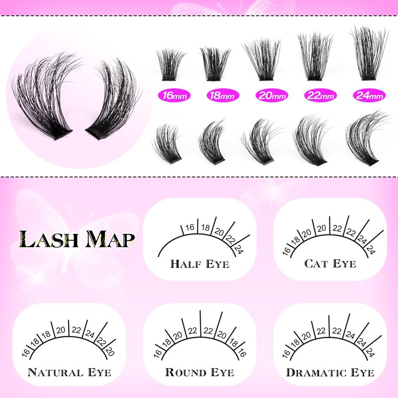 - DIY Eyelash Extensions: 200pcs of 200D eyelash clusters with 5 lengths of 16-24mm super long lash clusters to provide you different choice to DIY your favorite personality eyelash style: gorgeous cat eyes, cute round eyes and more. You can DIY at home instead of salon, saving more money and makeup time and being more convenient