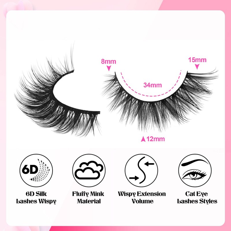 - Cat Eye Lashes: The paireds lashes of cat eye style gradually extend to the soft length of the outer corner of the eyes, making the eyelashes extension naturally. Criss-cross eyelashes in the middle and thick eyelashes, wispy but not exaggerated eyelashes very fit your eyelids, giving you a gorgeous wearing effect