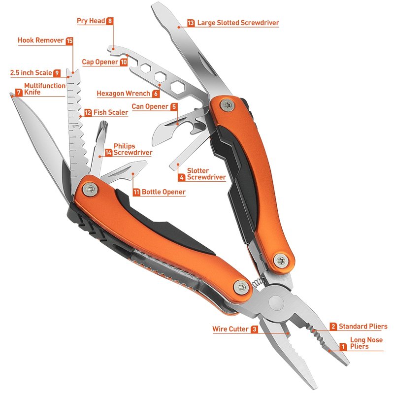 - 【MULTI TOOL】: Our premium multitool set includes all these important tools in one handy pocket knife - wire cutter, needle nose pliers, regular pliers, nail file, hook remover, can opener, folding saw, sharp knife, bottle opener, small, medium, and big screwdrivers, Cross Head Screw-Driver screwdriver, fish scaler, & a ruler.