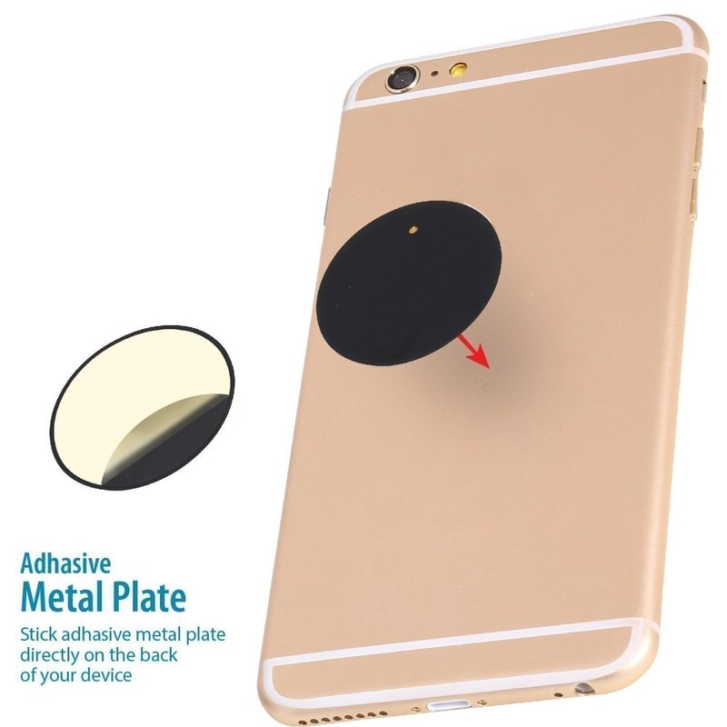 3)Place the magnet metal plate in your case between the cover and the phone, Or stick on the round magnet metal on your phone or GPS