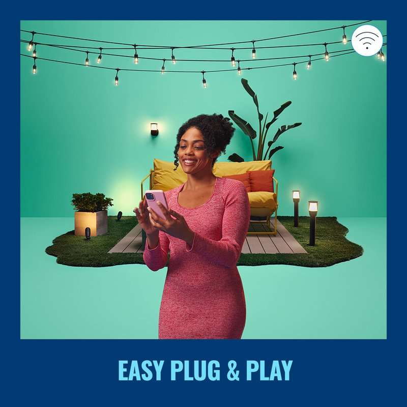 - EASY TO USE - Create your perfect outdoor light scene. Set schedules and automate your smart lights with the free WiZ app. Intuitively designed so you can enjoy your ideal atmosphere.