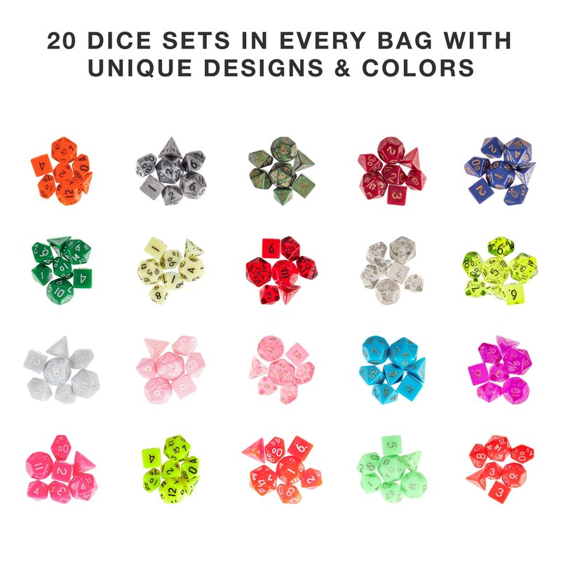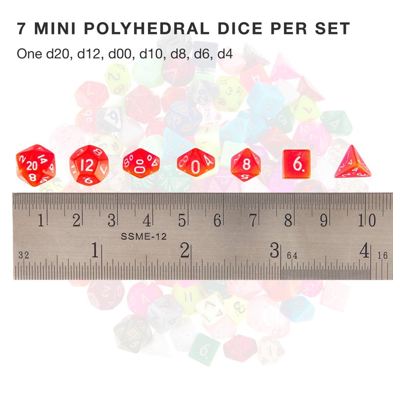 • Includes: 20 Mini dice sets of 7 per bag polyhedral dice set with easy-to-read numbers. Our bulk dice are perfect for mtg dice game and include each of the polyhedral: d4, d6, d8, d10, d10(00), d12. and d20 dice set