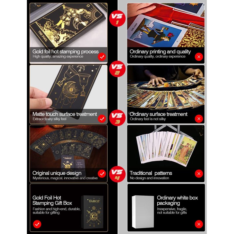 - 3)Soft to the touch, easy to shuffle, easy to store, long-lasting use. It is perfect to use our tarot to divination the past, present, or future by formulating a question, such as life, money, health, family, business, etc. It will guide us to healthy and positive living. Tarot Decks, Tarot Cards Decks