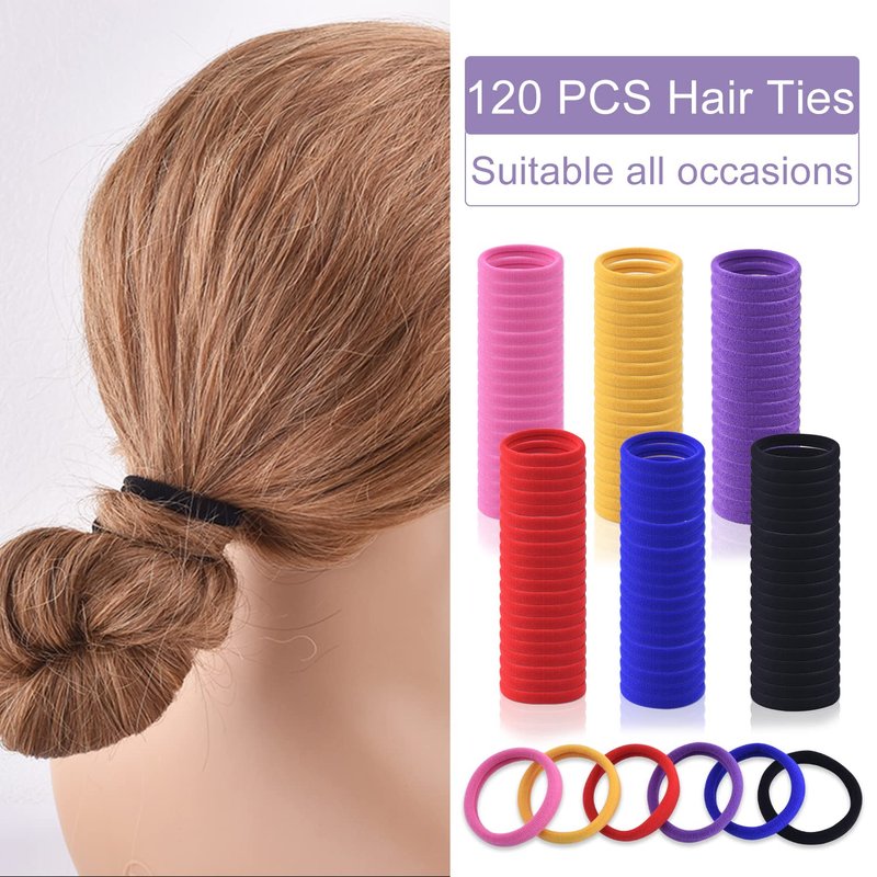 - 【Durable and Money Saving】--- Our multicolour hair ties made of seamless cotton, not easy to break. The 120 pcs various colors hair ties can be used for a very long time.