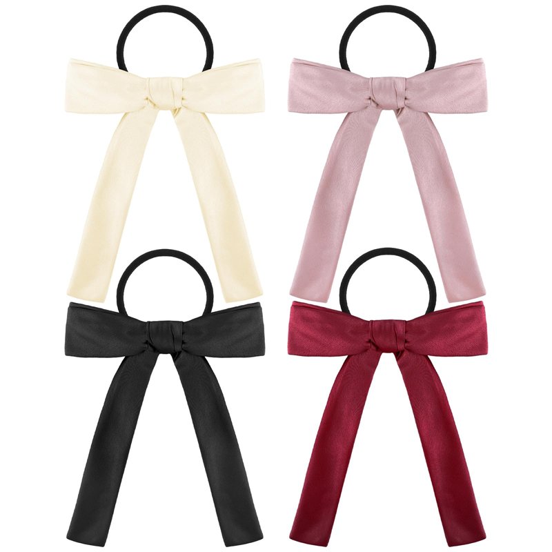 4PCS Bow Hair Tie Satin Hair Ribbon Bowknot Long Tail Ponytail Holder Elastics Hair Scrunchies French Hair Scarf Bands Rope Princess Hair Accessories for Women Girls