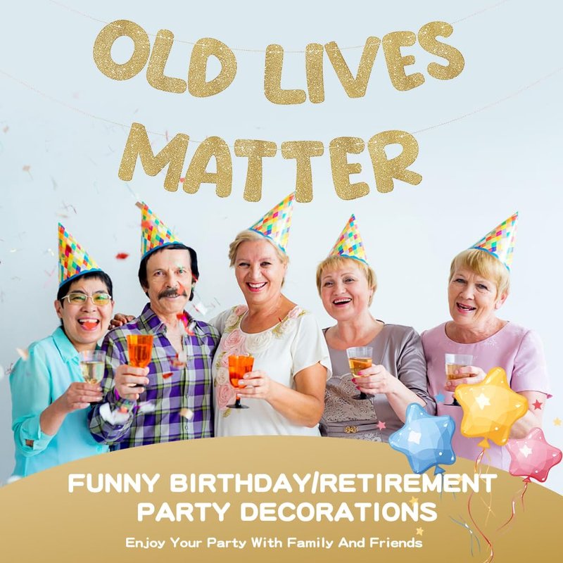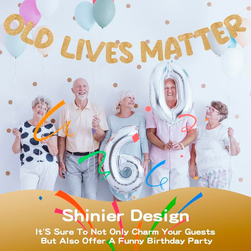 Old Lives Matter Happy Birthday Banner, Funny Birthday Retirement Party Decorations,80th 70th 60th 50th Birthday Decorations for Men Women,Garland Bunting Glitter Decoration,Funny Party Props