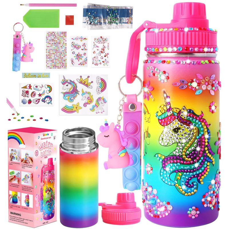Fun Arts and Crafts for Girls age 8-12 6-8: Our water bottle decorating kit for girls age 4-6-8-10,it includes Unicorns toys for girls that kids love.The DIY gem art for kids water bottle kits include sparkling diamond stickers painting for kids to bling out their bottle. Our Unicorn gifts for girls 5-7 is sure to make them happy and promote children’s imagination and fine motor skills.