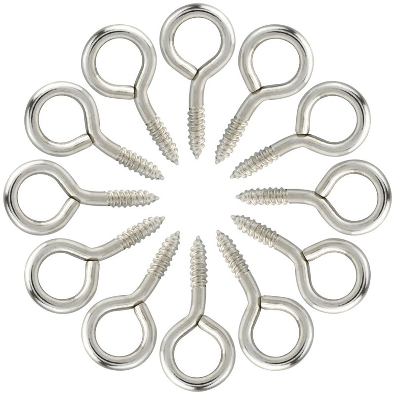 - Material: Zinc plated metal, prevent rust, smooth and without something stinging; Color: Silver. These small eye bolts are only suitable for hanging and fixing lightweight and small items, gadget.