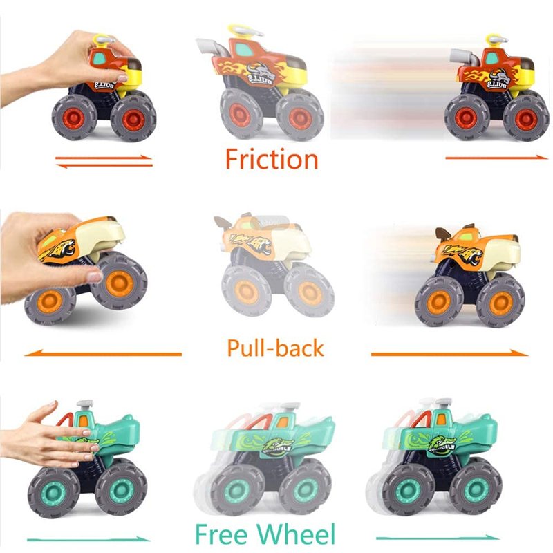 Woby Push and Go Friction Powered Cars Pull Back Vehicles Monster Truck Toy Set.
