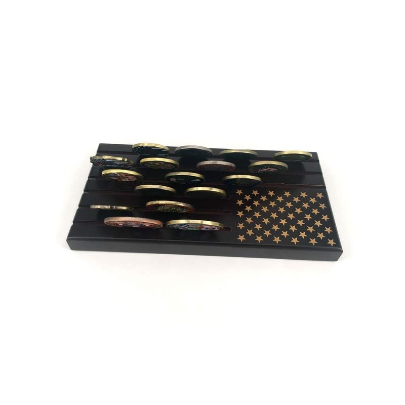 WOERDA American Flag 6 Row Challenge Coin Display Stand Case Military Coin Holder Display