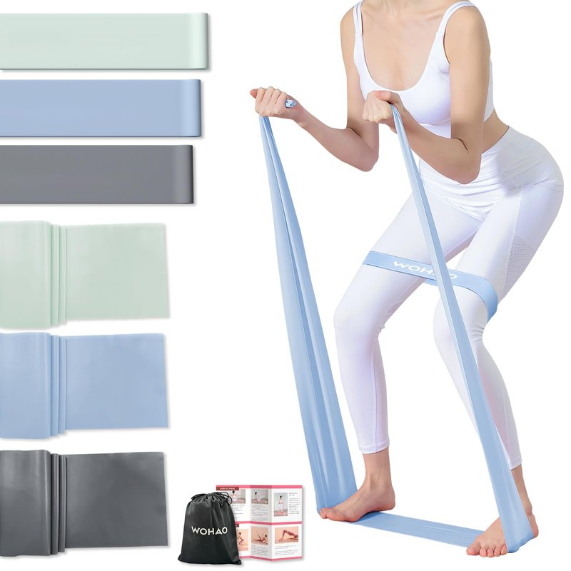 WOHAO Resistance Band Set, Three Resistance Levels, Stretch Bands for Working Out Women or Men, Strength Training, Home Fitness, Toning, Stretching, Yoga, Pilates (Blue&Gray&Green)