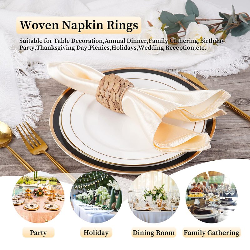 - [Add Personality to Your Table] Adding style to your dinner table settings with our classic farmhouse napkin rings. While impressing your family, this woven napkin holder will easily match with theme of farmhouse, autumn harvest and Thanksgiving, making a beautiful addition to your, and helping you easily receive compliments at the party or dinner from family and friends.