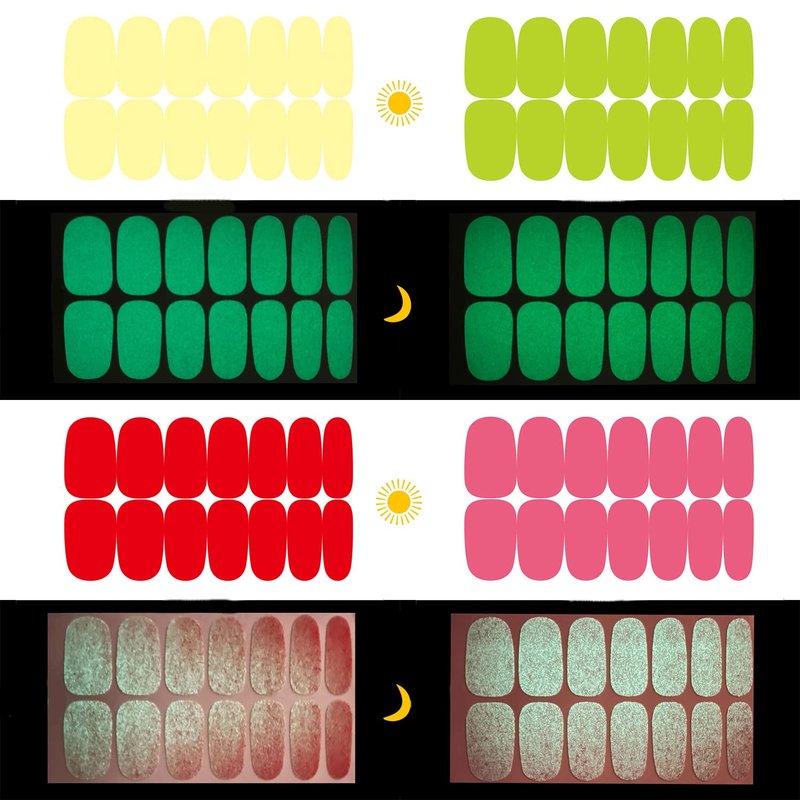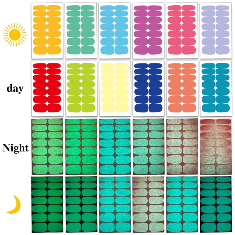 - 【LUMINOUS DESIGN】: these full nail wraps are designed to glow in the dark, including various different solid colors and sizes, which is fashionable to mix up with different style everyday. Especially at night, it will make your nails more dazzling and charming.