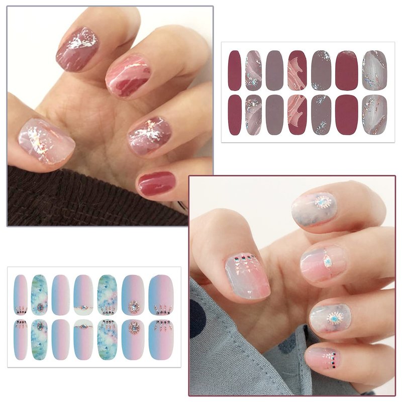 - 【12 DIFFERENT GLITTER GRADIENT DESIGNS】:these full nail wraps including various different mixed color and gradient designs, that are fashionable to mix up with different style everyday, make your nails more dazzling and charming.