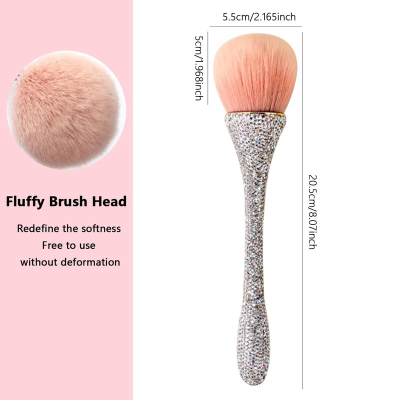 WOKOTO 1pcs White Shiny Rhinestone Nail Art Dust Brushes For Acrylic Nails Powder Remover Brushes Loose Face Cosmetics Blending Liquid Foundation Powder Make Up Brushes Nail Trimming Cleaning Tools