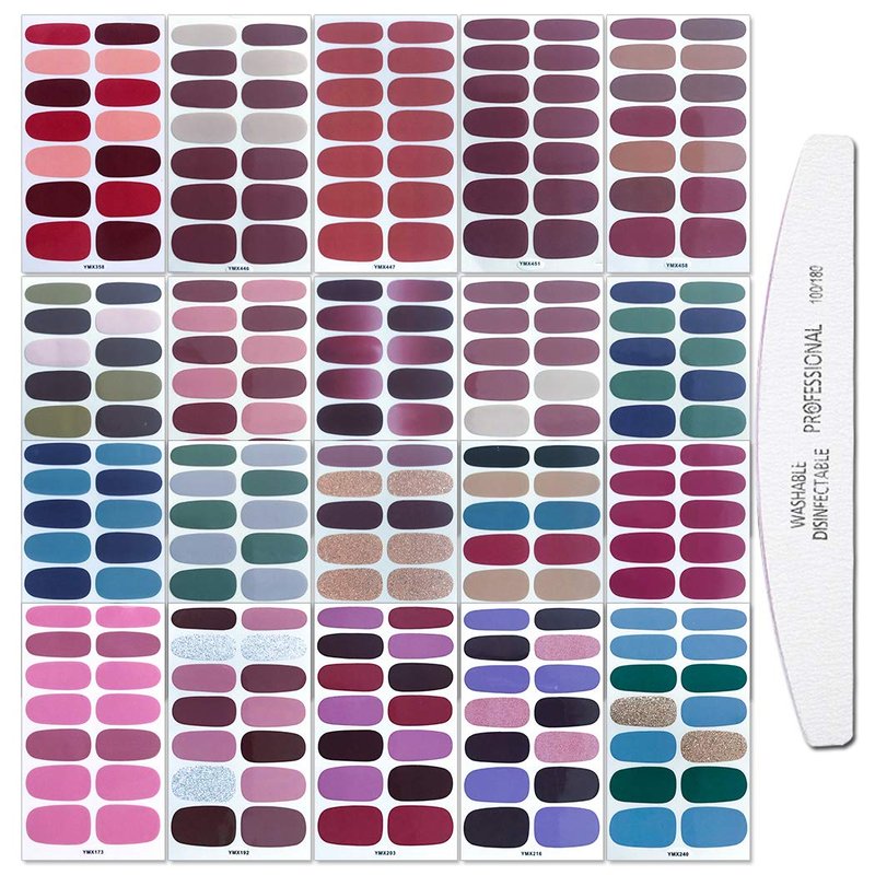 WOKOTO 20 Sheets Solid Color Nail Art Polish Wraps Stickers Strips Set with 1Pc Nail File Self-Adhesive Adhesive Nail Decals Manicure Tips