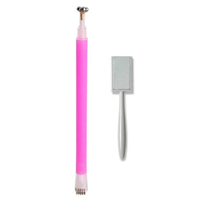 WOKOTO 2Pcs Nail Magnet Tool Set with Double Head Flower Design Nail Magnet Stick for Cat Eye Gel Polish Magnetic Pen Nail Art Tool Set