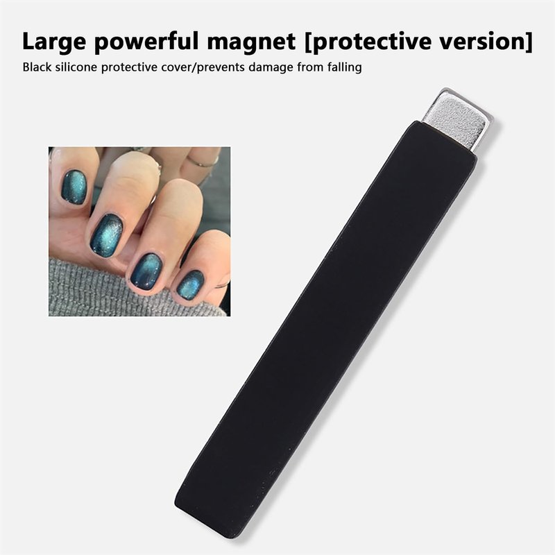 - 【LARGE OBLONG NAIL ART MAGNET】 : It is a large oblongr magnet with magnetism, length 2.34 inch (6cm), wraped with a black silicone cover, that a amazing magnet tool for cateye pattern nail art design.