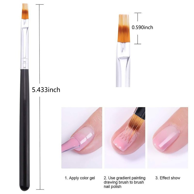 - 【Ombre Gradient Brush For Nail Art Set】: Ombre gradient nail art paint brushes are mainly used for making different gradient effect on nails, different brush can make different nail art effects : liners, blooming effect ,etc. They are a perfect set for making the popular gradient nail art !