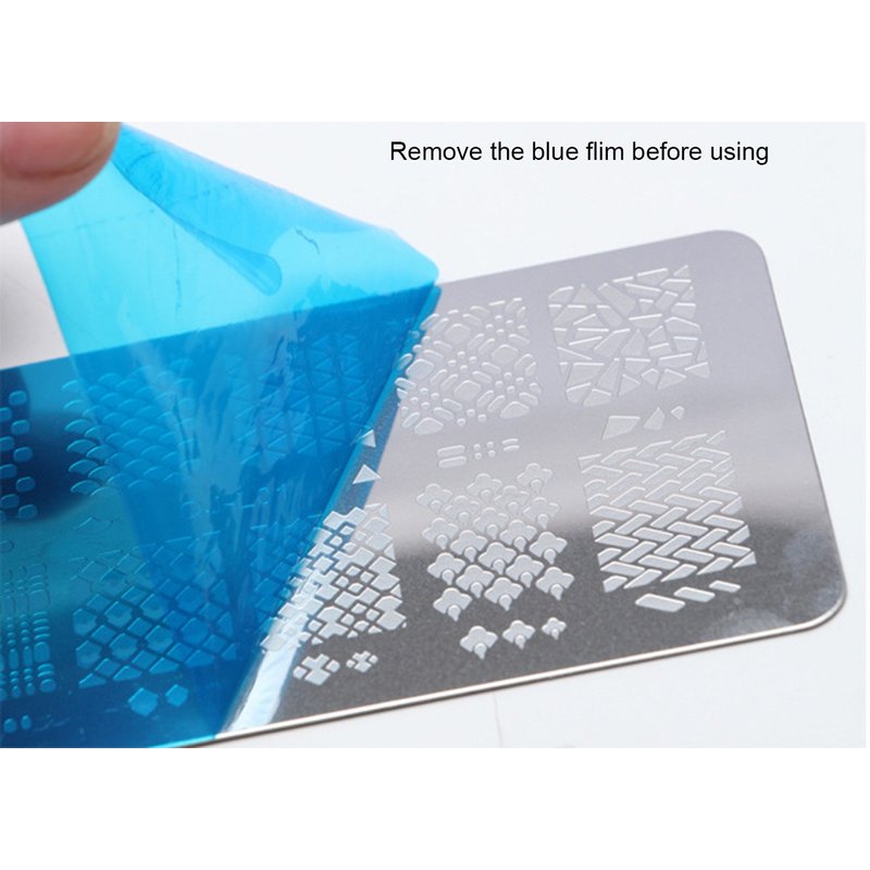 The plate is shielded by a thin transparent protective film, please remove the film before use, so that the nail polish can be transferred by the stamper.