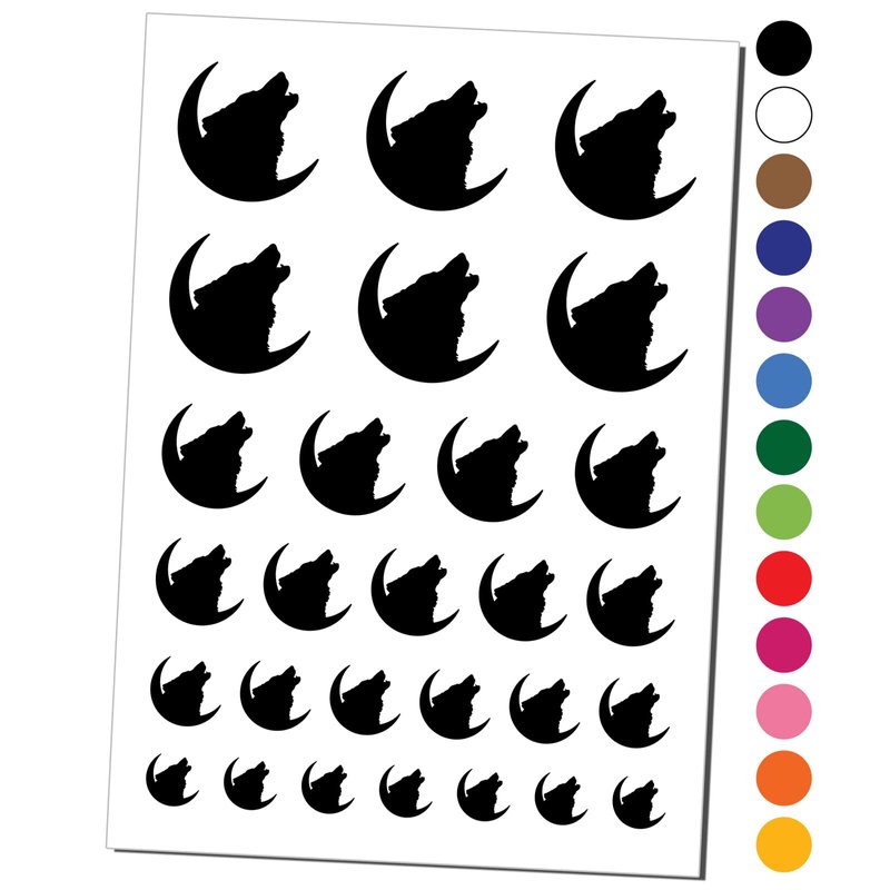 Wolf Howling Crescent Moon Temporary Tattoo Water Resistant Fake Body Art Set Collection - Black (One Sheet)
